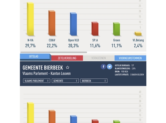 Zowel voor de Kamer als voor het Vlaams Parlement scoort N-VA uitzonderlijk goed in Bierbeek, met een score die in beide gevallen rond de 30% draait. Wij danken onze kiezers die een dergelijke score mogelijk maakten en zullen alles in het werk stellen om dit vertrouwen niet te beschamen.